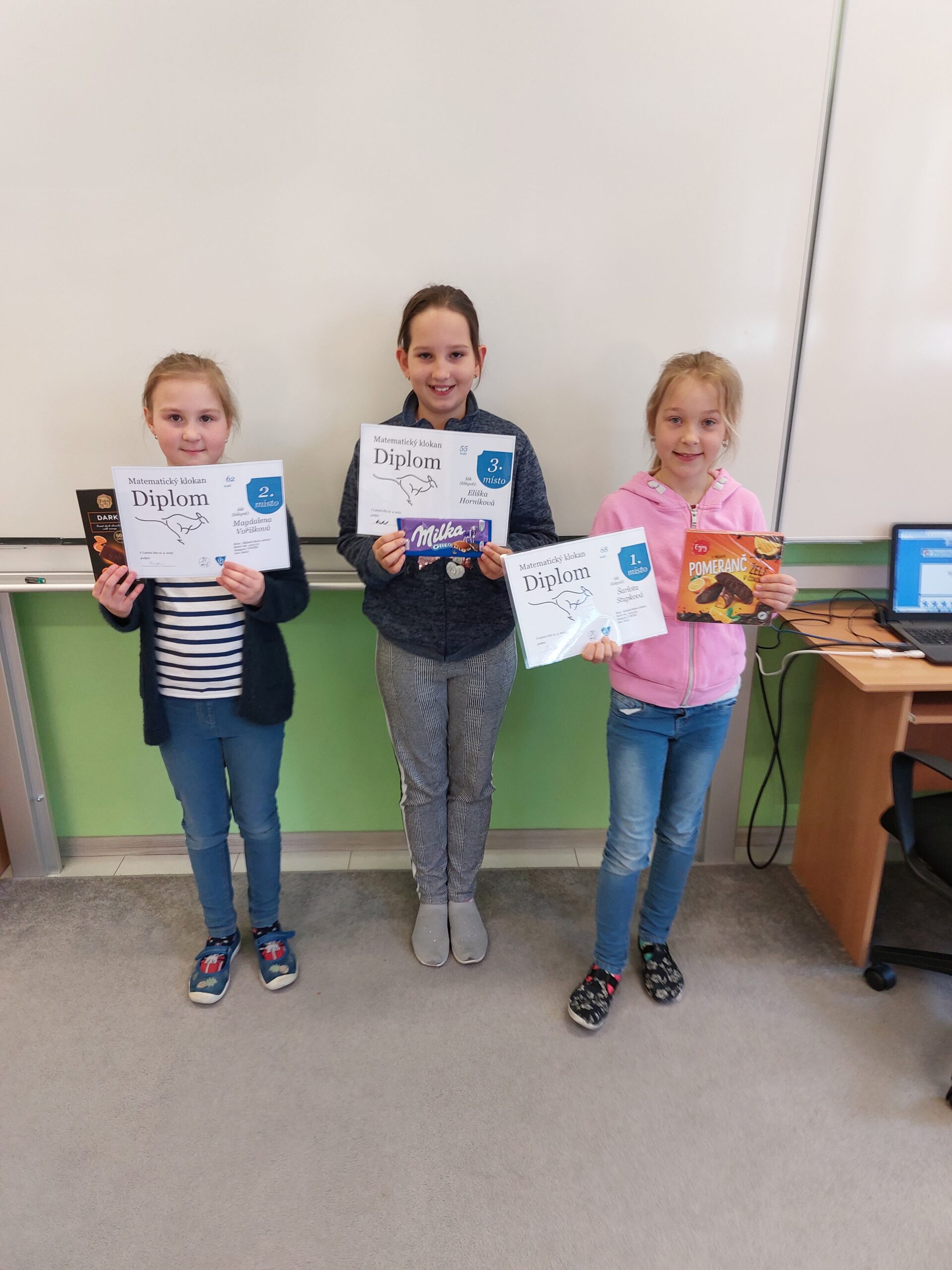 Na naší škole stejně jako v celé republice proběhla oblíbená matematická soutěž Klokan. V kategorii Cvrček: místo : Šarlota Stupková...