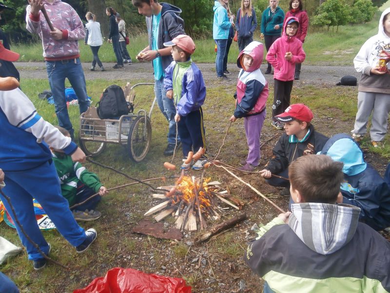 Děti plnily úkoly na jednotlivých stanovištích. Zabývaly se tím, jak přežít v přírodě, jaké rostliny se vyskytují v lese, která zvířata v něm žijí, házely šiškou na cíl ad. V cíli je čekala příjemná překvapení v podobě ohniště, kde si ,,vyhládlé“ děti opekly buřty. Za své výkony obdrželi ti nejlepší malý dáreček a všichni sladkou odměnu. Děti si tak svůj den skutečně naplno užily.