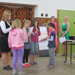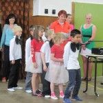 Pak už se zábava rozproudila naplno. Nejmenší děti recitovaly, tančily, hrály na flétnu a akordeon a ztvárnily pohádku o žíznivém psovi, co si šlape na jazyk. Žáci druhého stupně předvedli vtipnou scénku o klíštěti, rozesmáli diváky bláznivým tancem v konstýmech i parukách na písničku Nám se daří. „Mazáci“, tj. žáci 9. ročníku, nás „vtáhli“ do každodenní reality rodičů a dospívajících dětí formou krátkých parodovaných rozhovorů. Milé odpolední setkání zakončily děti sborovým zpěvem, který byl doprovozen hrou na kytaru.