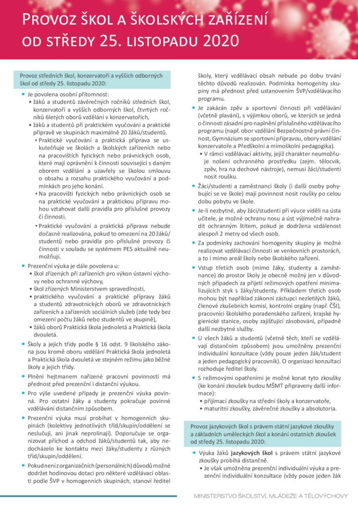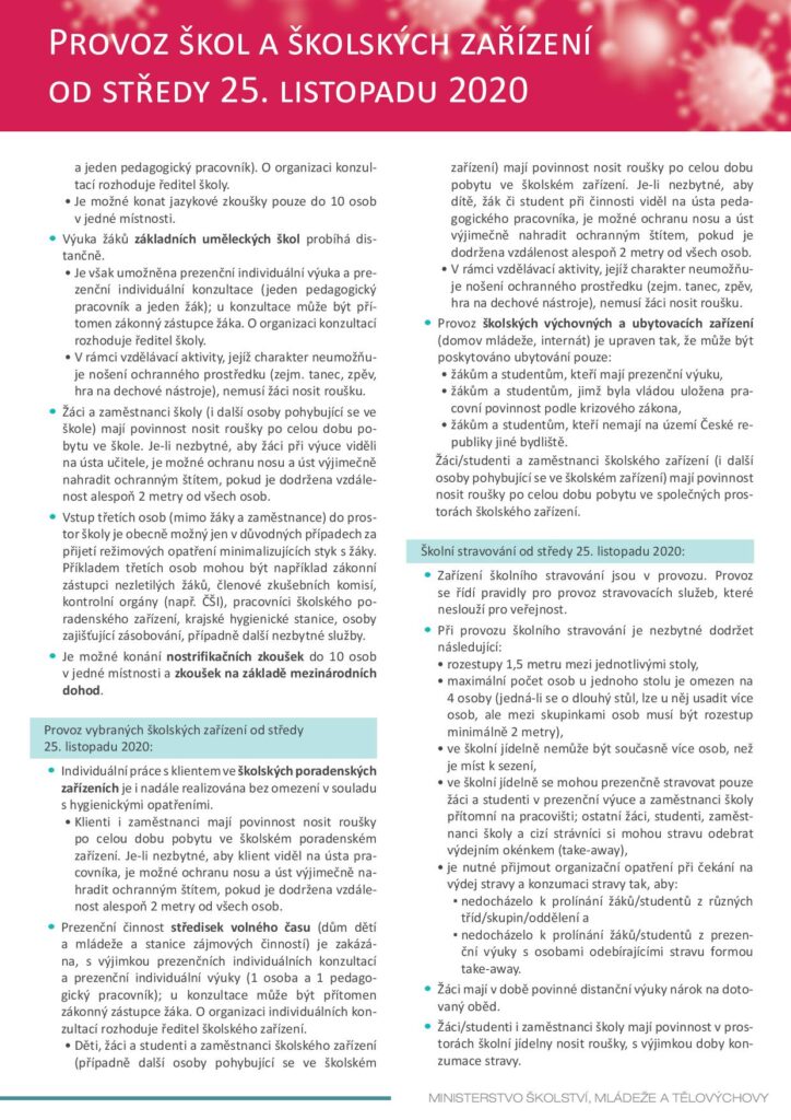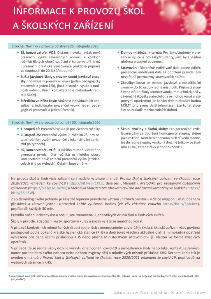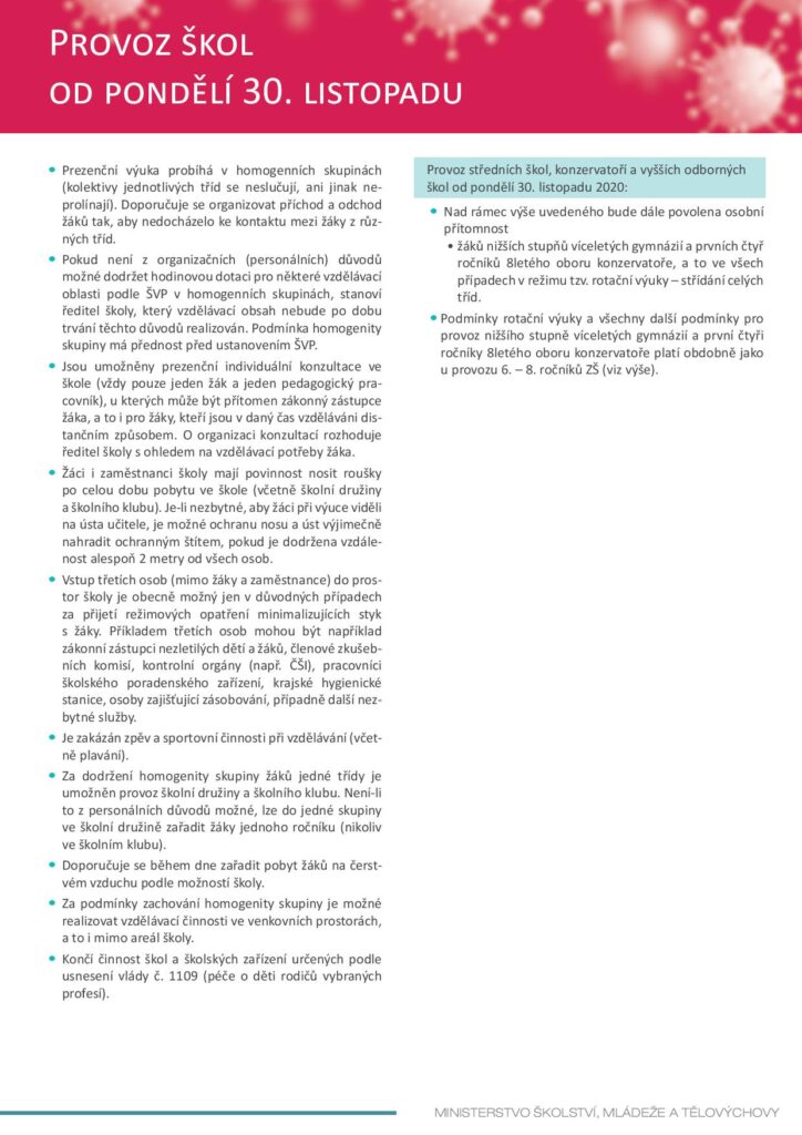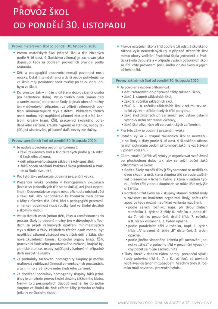 Informace k provozu školy od 30. 11. 2020
