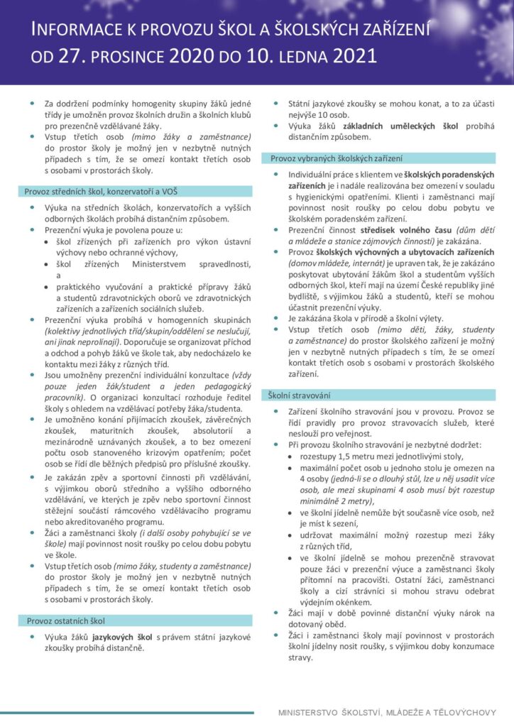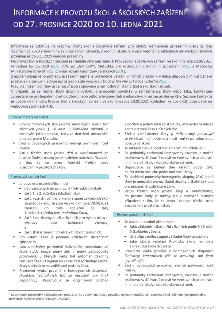 Provoz škol od 27. 12. 2020 do 10. 1. 2021