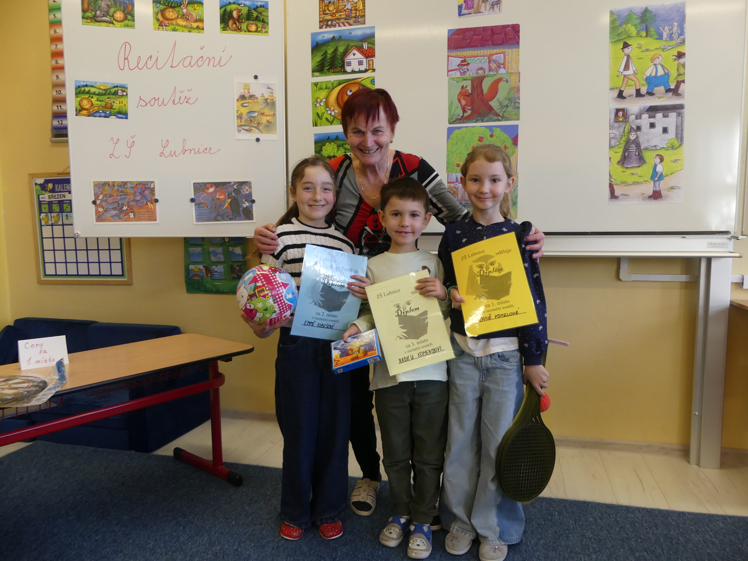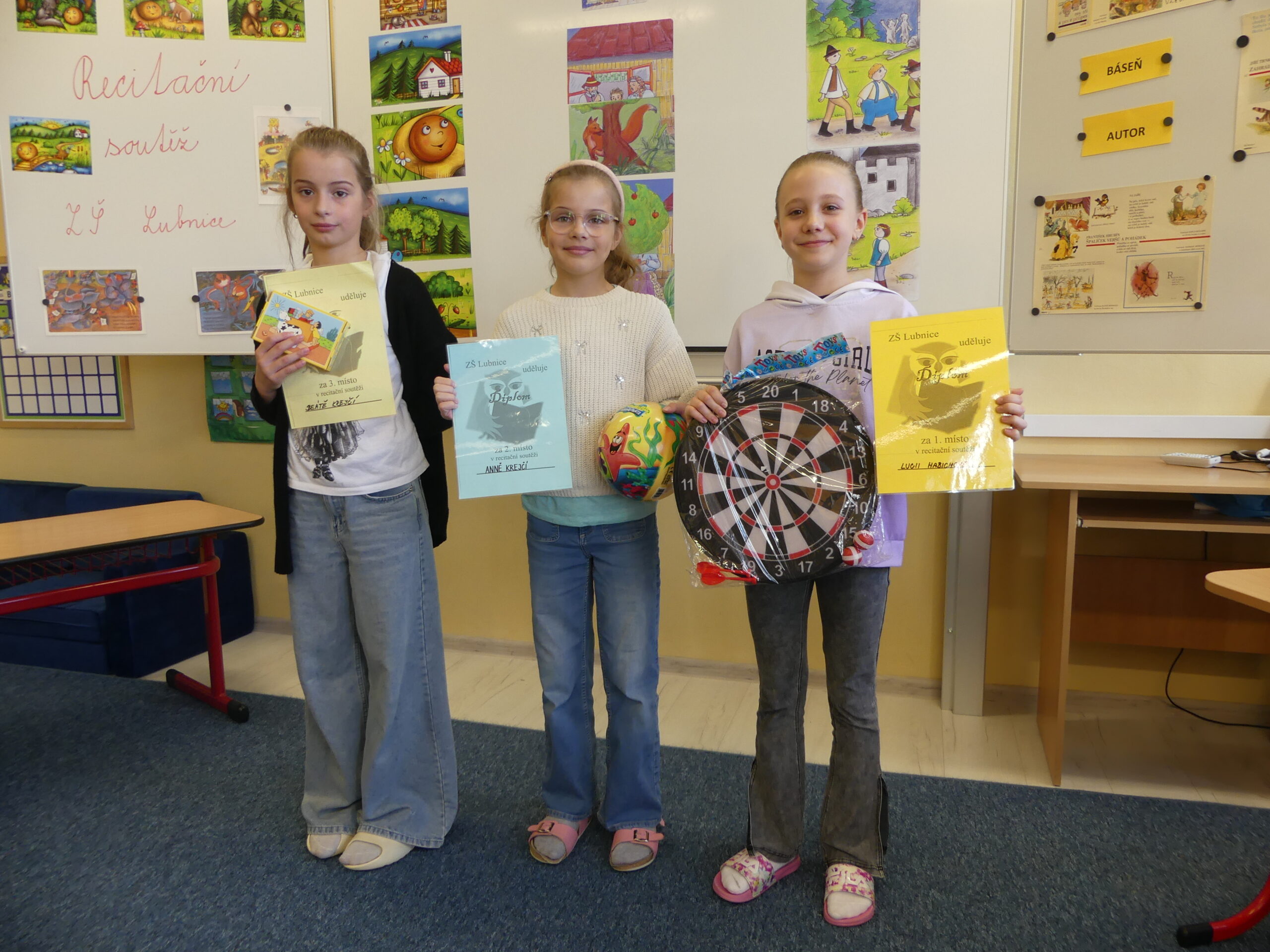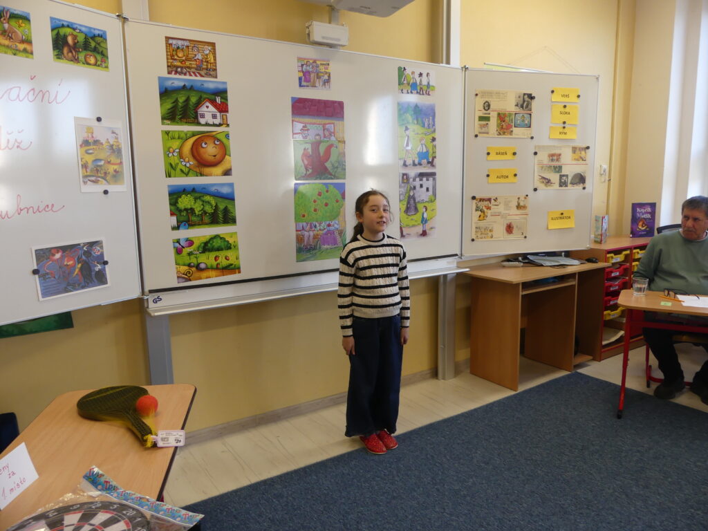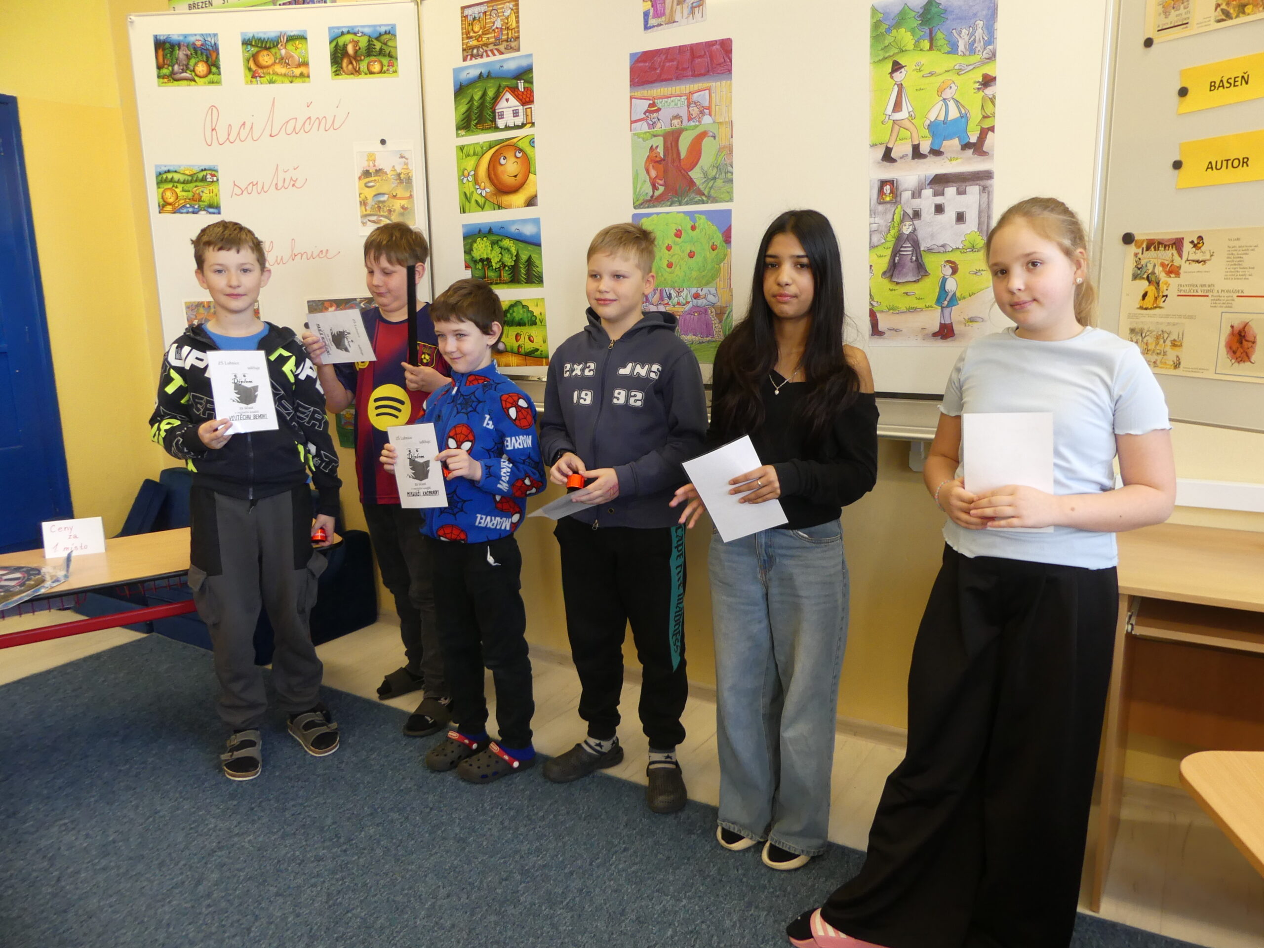 V pátek 6.3.2026 proběhlo školní kolo recitační soutěže, kterého se zúčastnili všichni žáci 1. stupně postoupivši z třídního kola. Své vystoupení braly zodpovědně. Texty měly opravdu naučené. Výkony žáků byly poměrně vyrovnané a porota měla velmi těžký úkol. v každé kategorii ocenila 3 nejlepší žáky, kteří obdrželi diplom a věcnou odměnu, ostatní potěšila drobná pozornost.