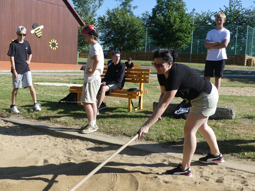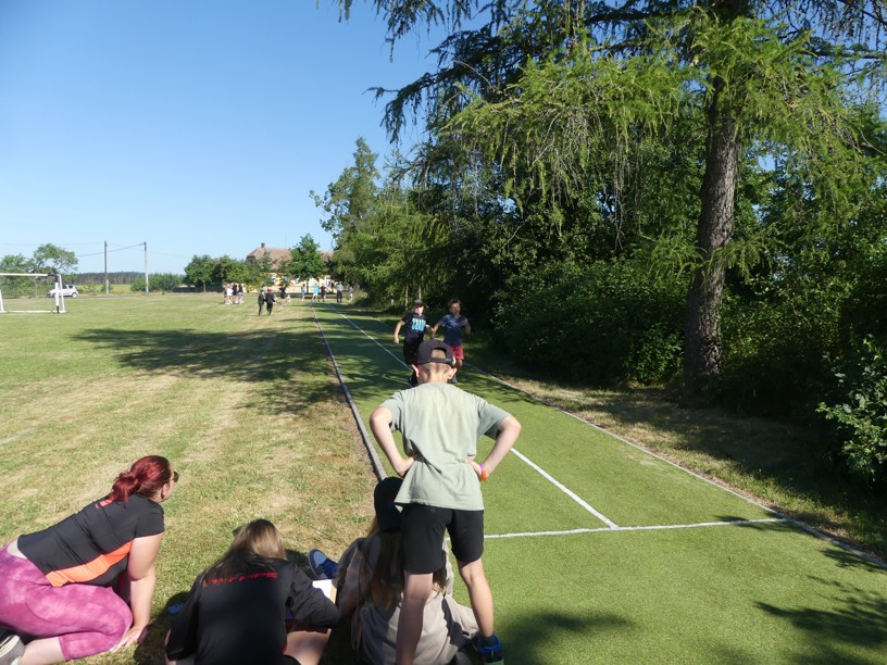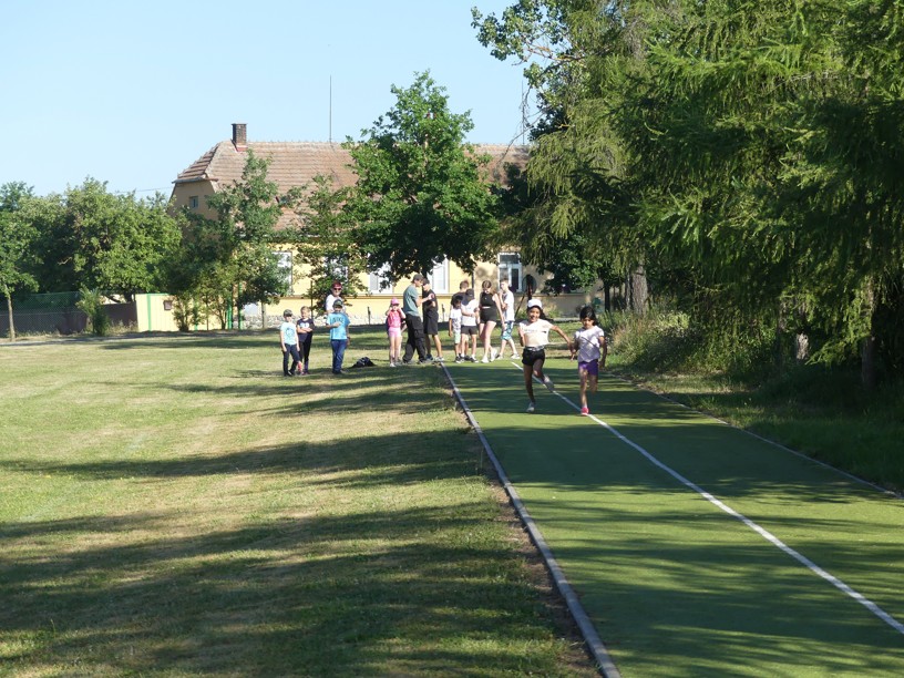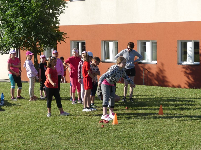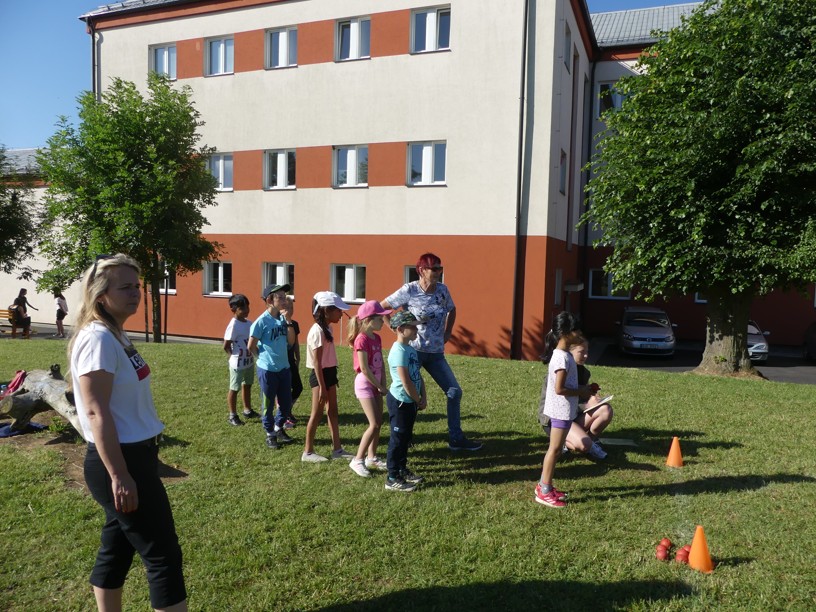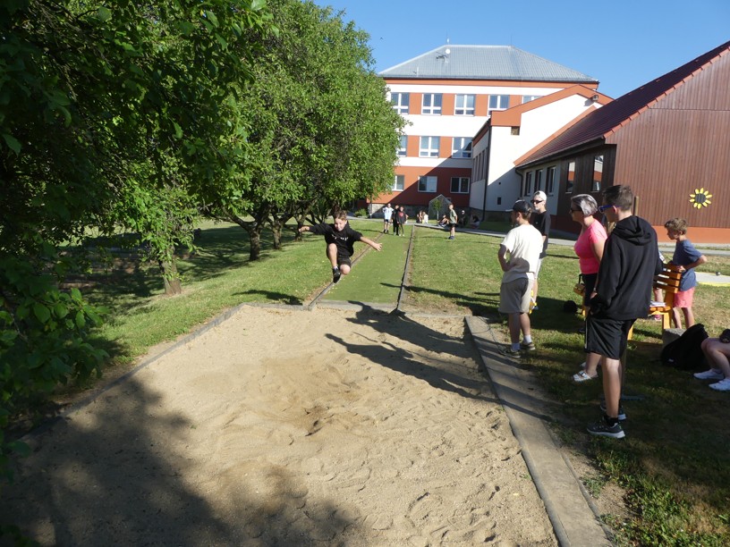 Sportovní den 30.6.2023 Čtvrtek 29. 6. jsme zasvětili sportu. V různých disciplínách si žáci 1. i 2. stupně poměřovali své síly.