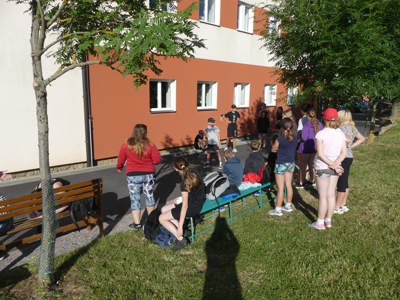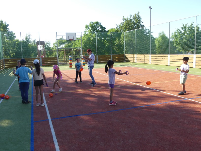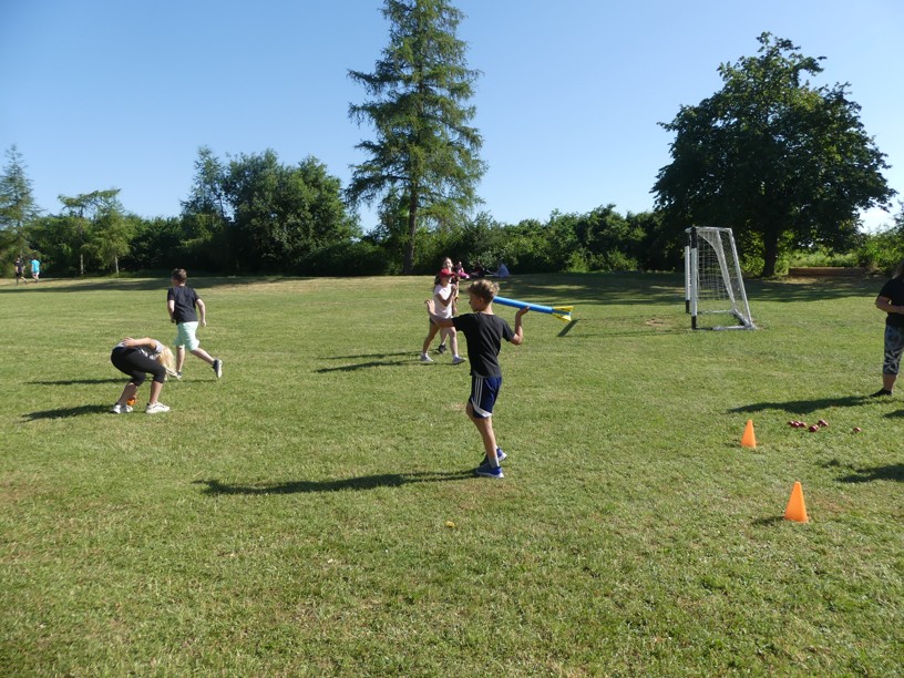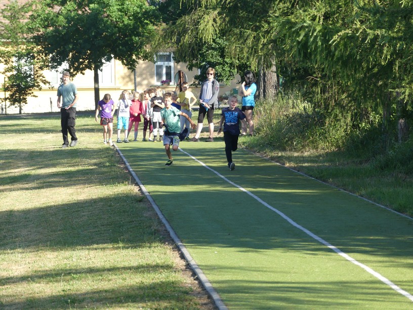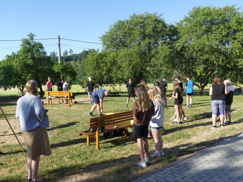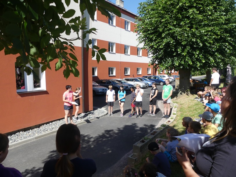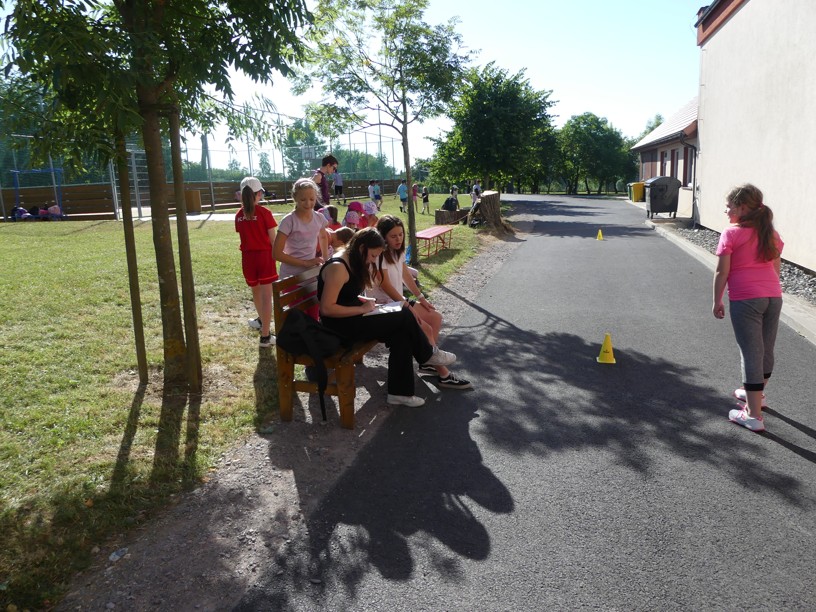 Sportovní den 30.6.2023 Čtvrtek 29. 6. jsme zasvětili sportu. V různých disciplínách si žáci 1. i 2. stupně poměřovali své síly.