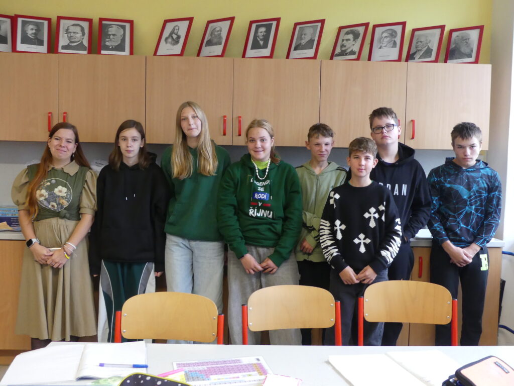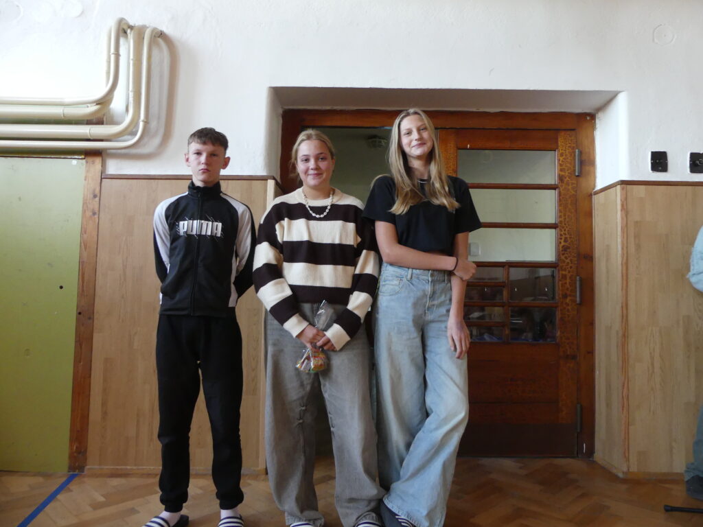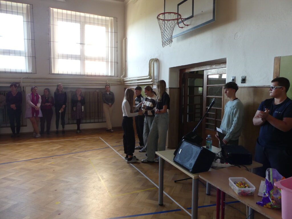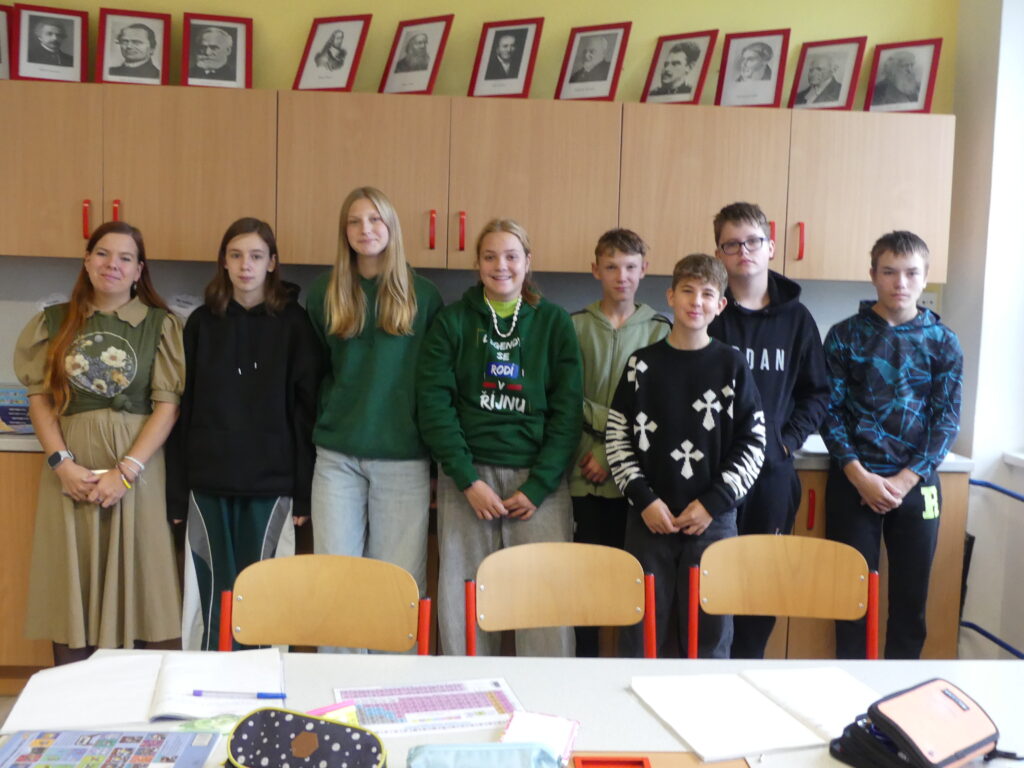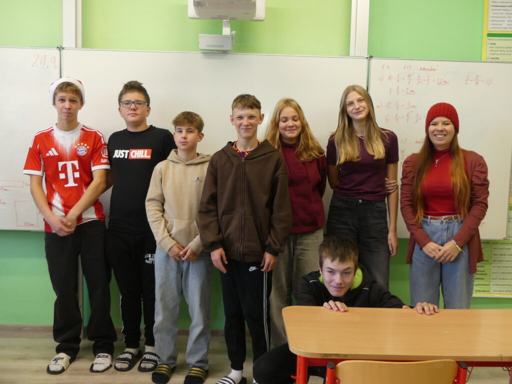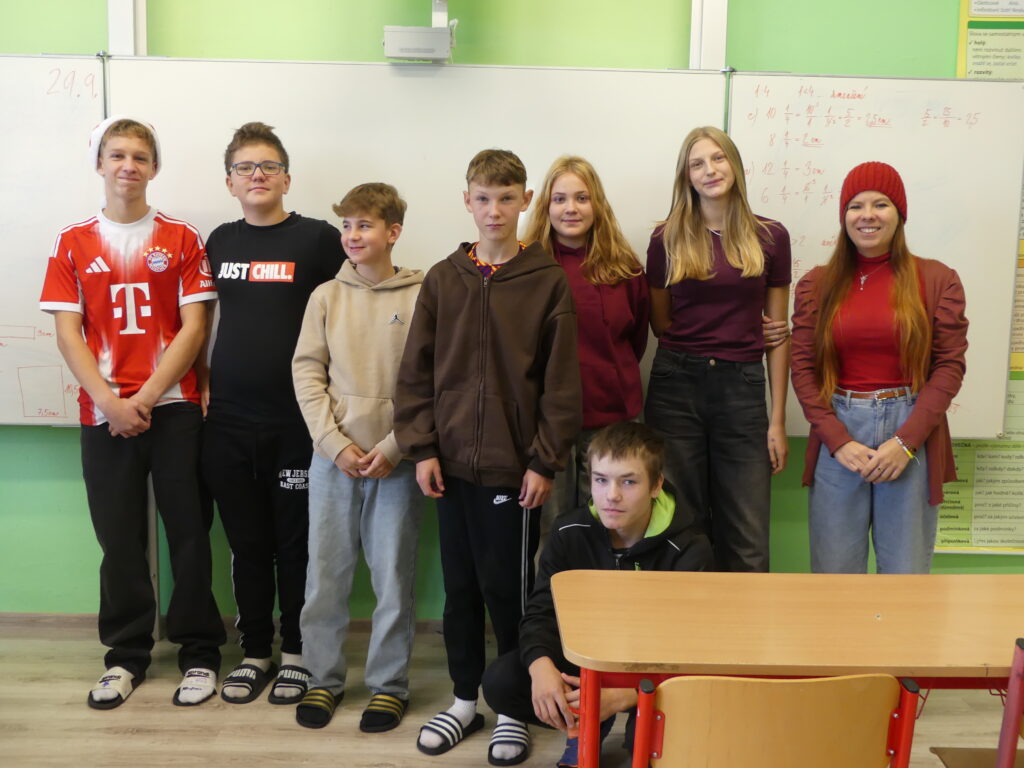 Příchod podzimu jsme na začátku října společně oslavili barevným týdnem. V pondělí jsme se oblékli podobně jako listí na stromech do červených odstínů, v úterý jsme červenou vystřídali za modrou, ve středu jsme navázali žlutou, čtvrtek patřil zelené a týden jsme zakončili barvou fialovou. Nejvíce bodů z osmé třídy získali Mirek Pluskal, Aneta Ošmerová a Evelína Endlová